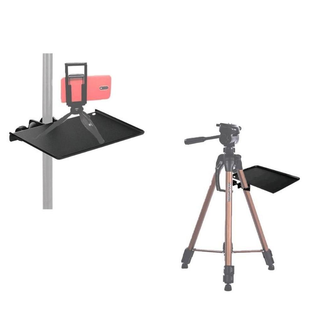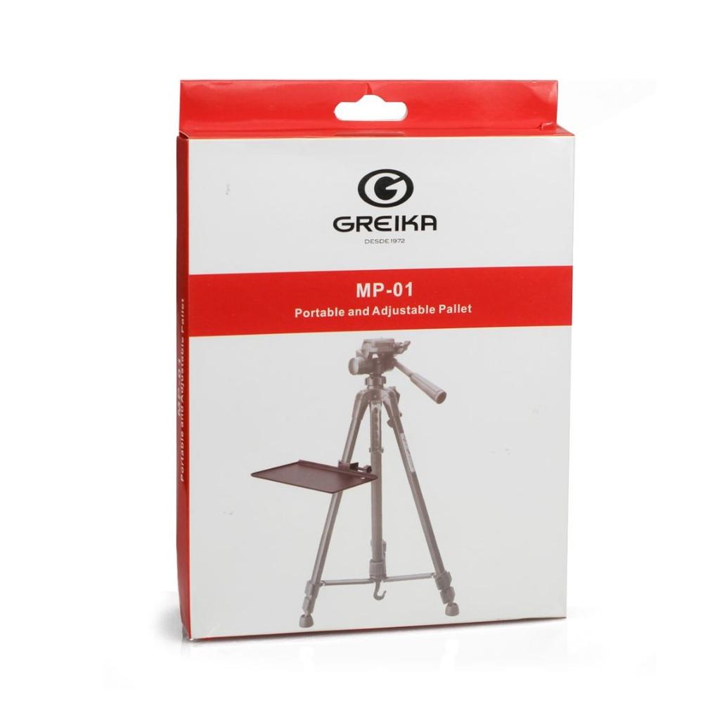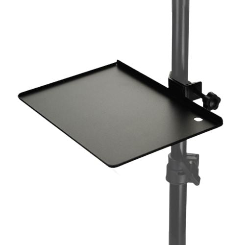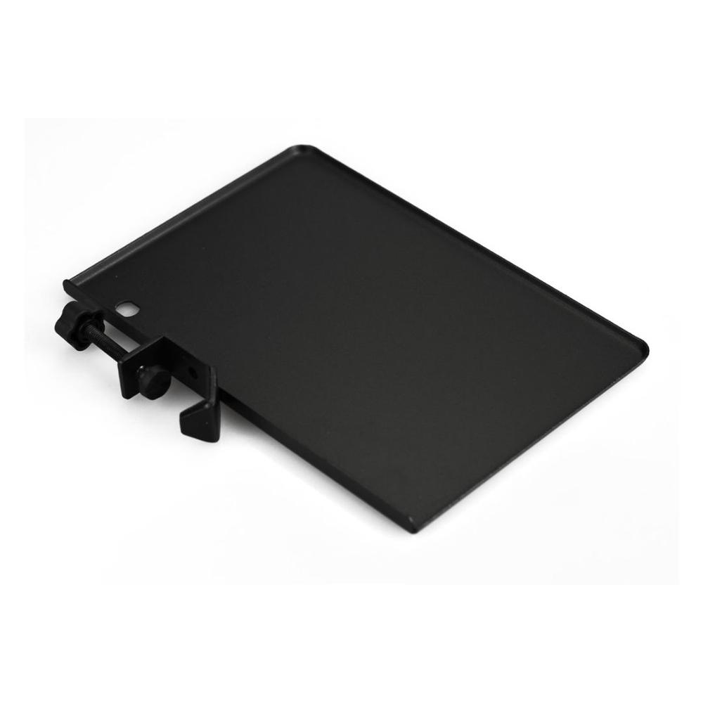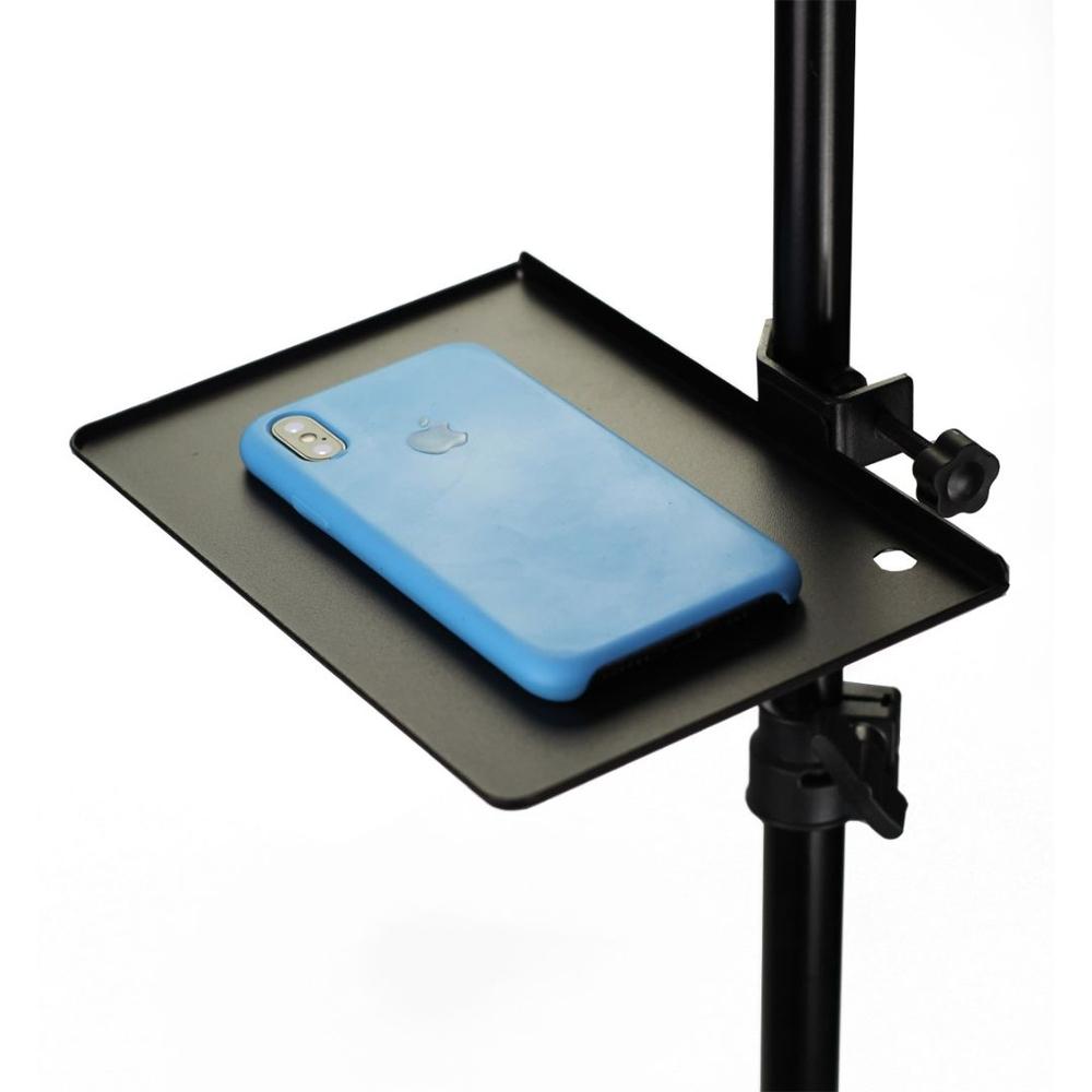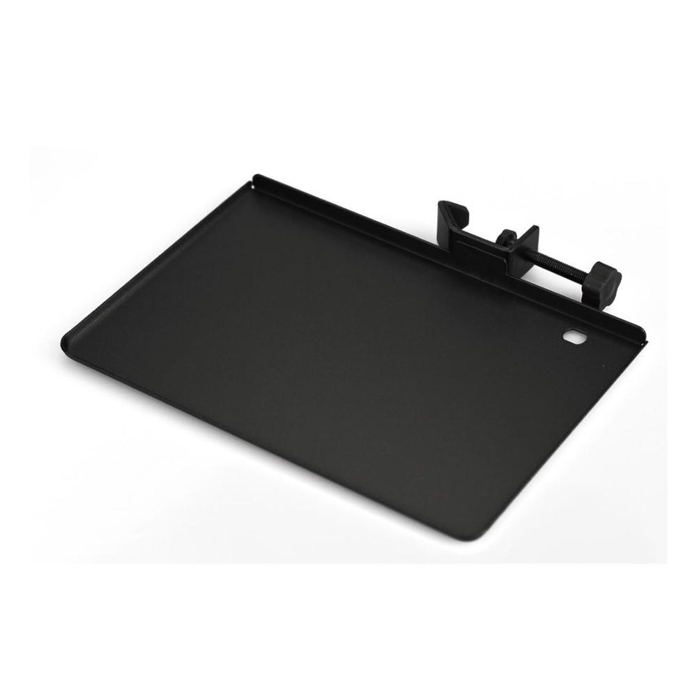 A bandeja tem 20 centímetros de comprimento e 14 centímetros de largura, com bordas levemente elevadas para garantir que seu acessório não caia do suporte. Possui um clamp braçadeira acoplado que é compatível com superfícies, cilíndricas ou retas, de até 3cm.