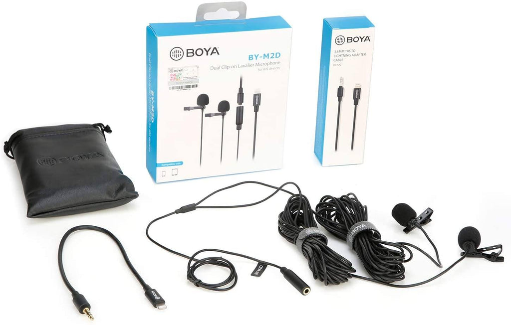 - Microfone universal Lavalier duplo com conector Lightning certificado MFI, projetado para smartphones iOS, iPad, Mac etc.