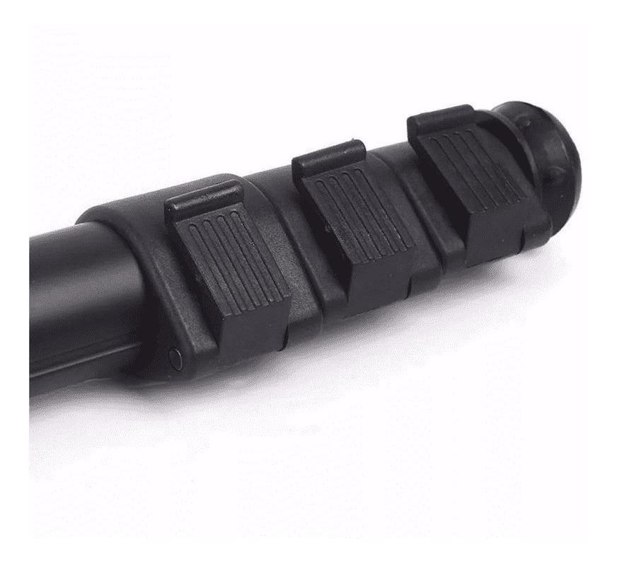 Construído em alumínio e plástico, esse monopé tem uma altura máxima de 1,70 metros e mínima de 54 centímetros. Ele conta com empunhadura de espuma emborrachada, que garante maior aderência durante o manuseio, e acompanha um cordão de proteção no topo.