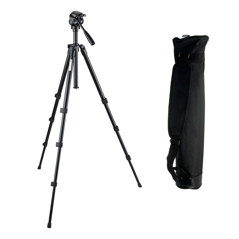 - Estrutura em alumínio, nível bolha, bússola, pernas com 3 seções e pés emborrachados